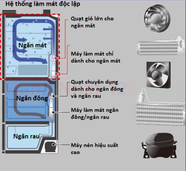 Tủ lạnh Hitachi nội địa Nhật R-HXCC62T-X được trang bị hai dàn lạnh độc lập, cho phép làm lạnh nhanh chóng các thực phẩm nóng mà không cần phải để nguội trước khi cho vào tủ.