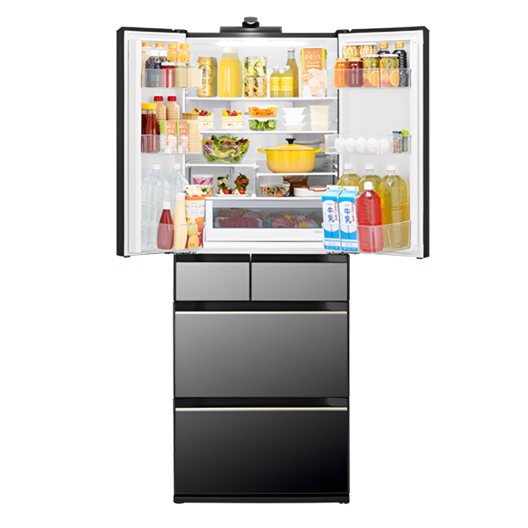 Nổi bật với thiết kế mặt gương pha lê đen sang trọng, 6 cánh hiện đại sẽ làm điểm nhấn nổi bật trong căn bếp. Ở trạng thái bình thường, bạn chỉ cần chạm vào ”MENU” bảng điều khiển sẽ hiện lên mặt kính. Đặc biệt với dung tích chứa lớn lên đến 617 lít hỗ trợ đắc lực việc lưu trữ thực phẩm cho gia đình từ 4-6 người thành viên.
